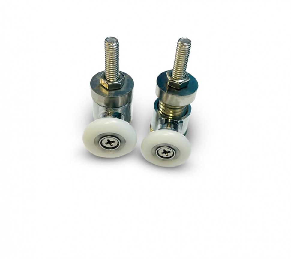 Набор универсальных одинарных металлических роликов для душевой кабины DC 1000, диаметр колеса — 23 мм, колесо съемное. В комплекте 2 ролика — верхний регулируемый и нижний подпружиненный.