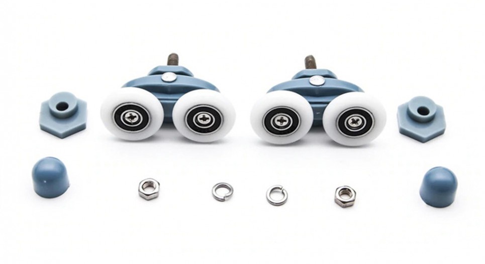 Набор двойных роликов DC 1011 для душевой кабины, со съемными колесами диаметром 25 мм, в наборе — 8 штук. Ролики оснащены эксцентриковым креплением под 1 отверстие и регулировочным винтом, диаметр монтажного отверстия — 10-12 мм. Подходят для стекол толщиной до 6 мм.