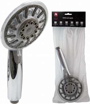 Лейка душевая БАРБАРА, 2-х позиционная, пластиковая, хром, светодиодная подсветка (3 цвета), AGD 20.1203S P (ЛМС-8803/пакет)