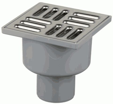 Трап вертикальный нерегулируемый с выпуском 50мм, с нержавеющей решеткой 100*100 Трап с гидрозатвором. Рекомендуется при частом использовании, допустимая нагрузка до 300кг