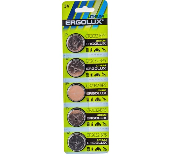 Элемент питания Ergolux 12051 литиевый (цена за 1 шт./уп.5 шт) CR2032 -BP5 3В