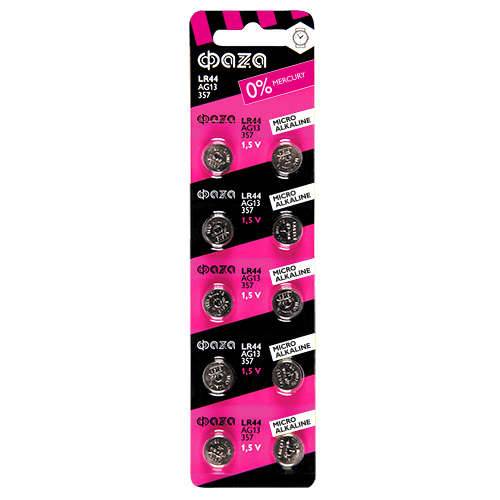 Элемент питания ФАZА 5002821 алкалиновый "таблетка" LR44/AG13 BL-10 (цена за 1 шт./уп.10шт)