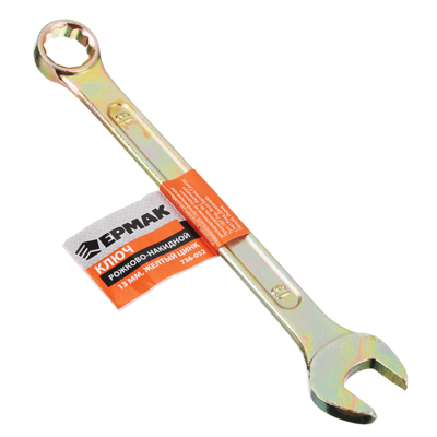 ЕРМАК Ключ рожково-накидной, 13мм, желтый цинк