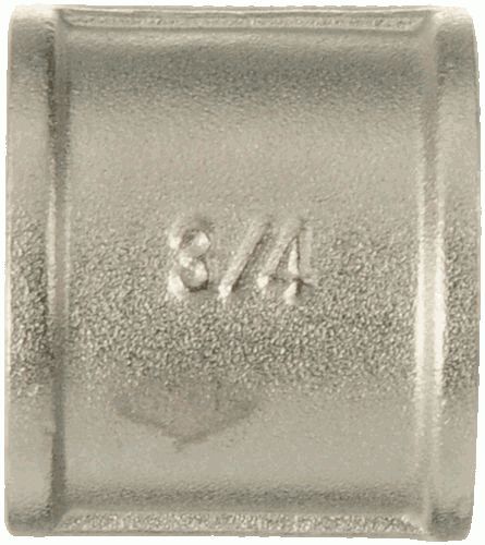 Муфта TERMA 06072 изготовлена из горячепрессованной латуни с никелированным покрытием, присоединительный размер 3/4", резьба трубная цилиндрическая. Применяется для прямого соединения труб одного диаметра. Номинальное рабочее давление от 25 бар, рабочий диапазон температуры от -20°C до +150°C.