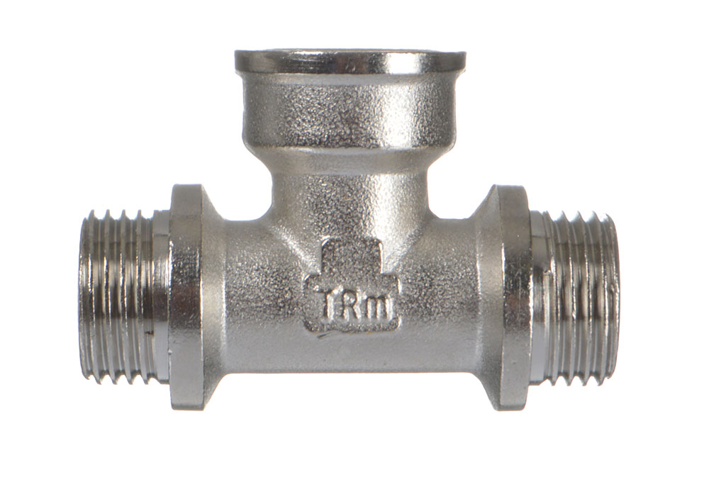 Тройник равнопроходной предназначен для создания соединения трубопровода, диаметр 1/2", резьба наружная/внутренняя/наружная. Изготовлен из горячепрессованной латуни с никелированным покрытием, номинальное рабочее давление от 25 бар, рабочий диапазон температуры от -20°C до +150°C