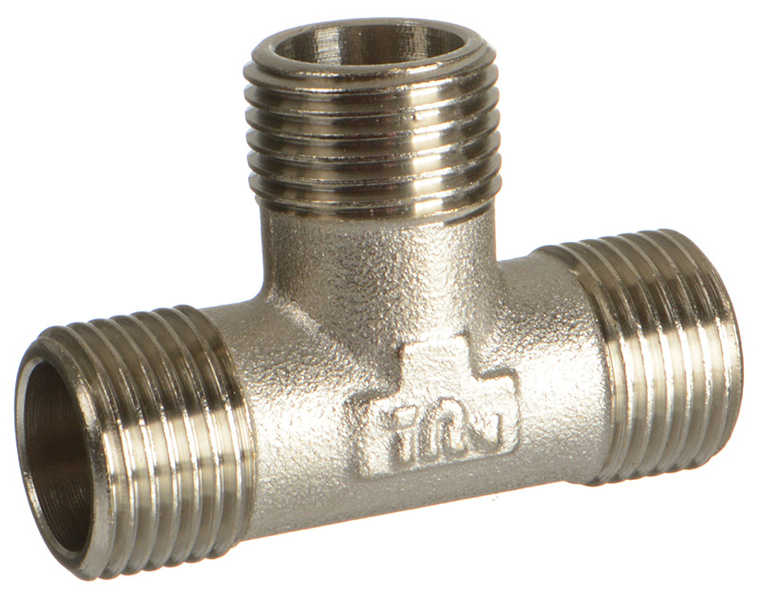 Тройник TERMA равнопроходной на 3/4" с наружной резьбой предназначен для подведения дополнительной ветки трубопровода. Изготовлен из горячепрессованной латуни с никелированным покрытием, номинальное рабочее давление от 25 бар, рабочий диапазон температуры от -20°C до +120°C.