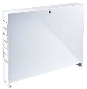 Пристраиваемые коллекторные шкафы (распределительные шкафы) VALTEC VTc.541.D предназначены для размещения в них коллекторов и коллекторных блоков систем внутреннего водопровода и отопления, а также смесительных узлов для водяного теплого пола VT.COMBI и VT.DUAL. Установка шкафа – пристенная. Детали шкафов коллекторных VALTEC выполнены из оцинкованной стали. Лицевые поверхности окрашены порошковой эмалью цвета RAL 9016 с предварительной фосфатной подготовкой поверхности. В боковых стенках корпуса выполнена перфорация, сегменты которой удаляются в месте, удобном для пропуска присоединяемых трубопроводов. Выдвижные ножки дают возможность регулировать высоту шкафа от 661 до 691 мм. Ножки имеют отверстия для крепления шкафа к полу. Откидная дверца имеет замок, защищающий установленное в шкафу оборудование от несанкционированного доступа. Внутри шкафа установлены передвижные монтажные рейки, к которым крепится оборудование.