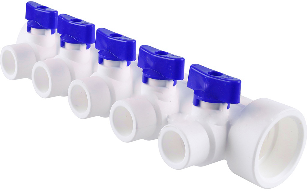 Коллектор PPR с кранами 40х20х5 (синие)Полипропиленовые коллекторы обеспечивают равномерное распределение потоков от главного трубопровода в системах отопления, водоснабжения и технологических установках, смонтированных с применением полипропиленовых труб без потери напора воды. Коллекторы оснащены встроенными отсечными (запорными) шаровыми кранами на отводах диаметром 20 мм