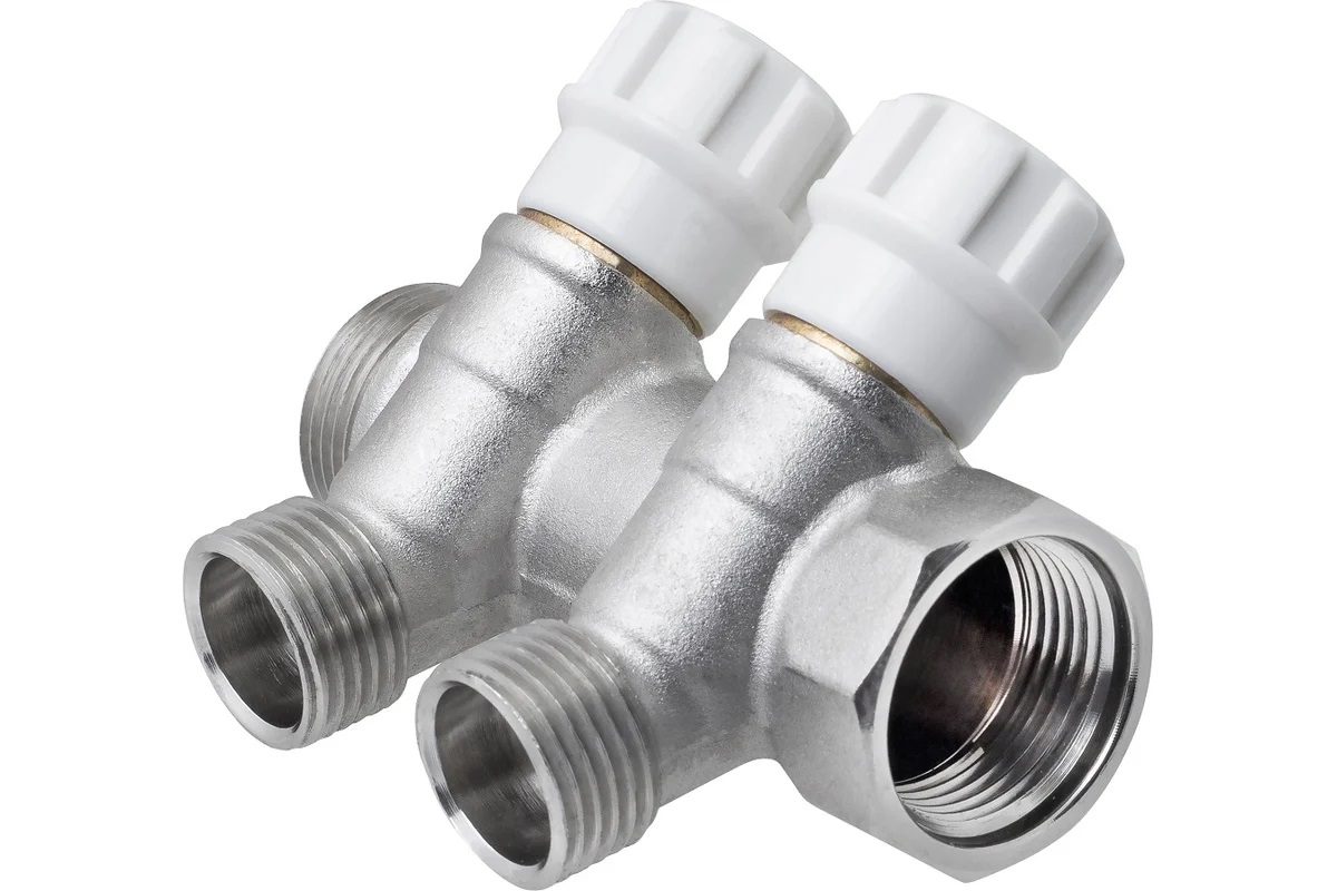 Коллектор с регулирующими вентилями MPF 2 выхода х3/4" х1/2", наруж.рез. ИС.071062 предназначен для распределения одного водяного потока на несколько одинаковых или не одинаковых по давлению. На двух противоположных сторонах устройства предусмотрено резьбовое соединение 3/4" (с одной стороны внутренняя резьба, с другой — наружная) для подключения к магистрали и соединения «гребёнок» между собой. На свободный конец коллектора устанавливается заглушка или дополнительный сантехнический прибор, например, мембранный гаситель гидроударов или коллекторный угольник/тройник для возможности установки воздухоотводчика, термометра, манометра выносного датчика термостата или сливного крана.