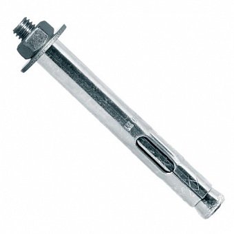 По своей конструкции строительный анкерный болт с гайкой представляет собой стержень, дополненный резьбой метрического типа, конусообразным хвостовиком, цилиндрической подвижной муфтой с прорезями, шестигранной гайкой и шайбой.