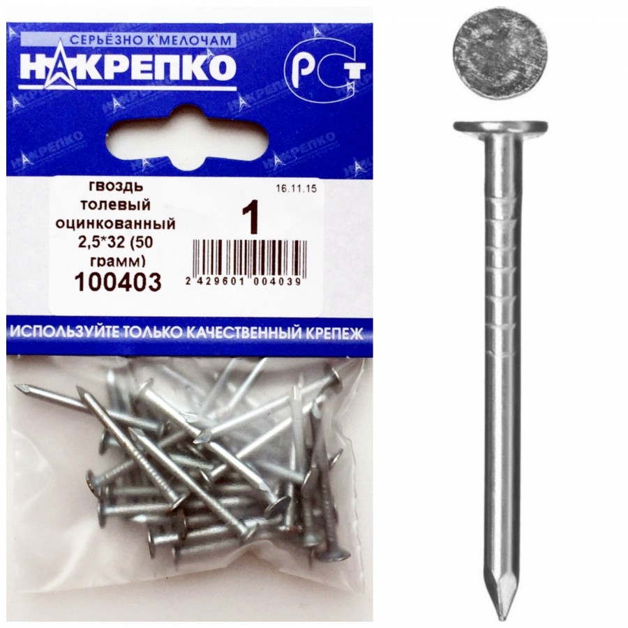 Гвоздь толевый оцинкованный 2,5x32мм (50 грамм) 100403