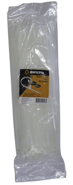 Хомут нейлоновый 4,8x300 белый (100шт.) ВИХРЬ