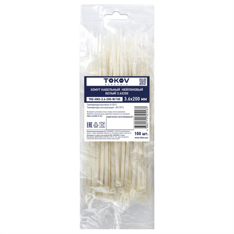 Хомут кабельный нейлоновый 3,6х200 белый (100шт.) TOKOV ELECTRIC TKE-HNS-3.6-200-W/100