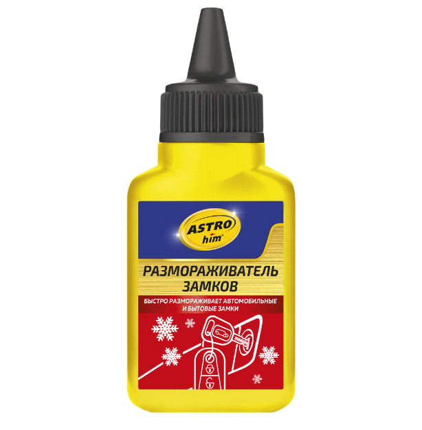 Размораживатель замков с силиконовой смазкой ASTROhim - незаменимое средство для автомобиля и в быту. Предназначен для автомобильных и бытовых замков. Быстро проникает в личинку замка, размораживает лед внутри механизма. Специальные добавки предотвращают образование коррозии и повторное замерзание.