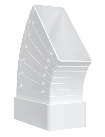 Колена разноугловые горизонтальные плоские КРП применяются для соединения воздуховодов соответствующего сечения под углом от 3° до 48°. В зависимости от выбранного угла одна сторона соединителя подрезается. C каналами соответствующего сечения соединяются напрямую.