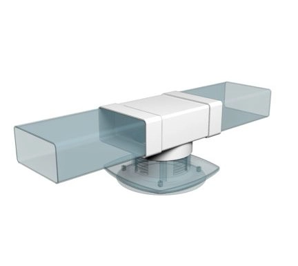 ТФП соединители плоских каналов с выходом на фланец. Соединитель плоских воздуховодов с выходом на фланцевые воздухораспределители. Для соединения двух плоских воздуховодов и устройства с фланцем – анемостата, диффузора, решетки или вентилятора. Монтаж с круглым воздуховодом возможен через соединитель СКП.